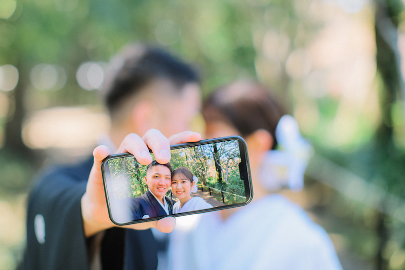 自撮りをしているお二人を納めた、普段中々自分達では撮れない貴重な写真!