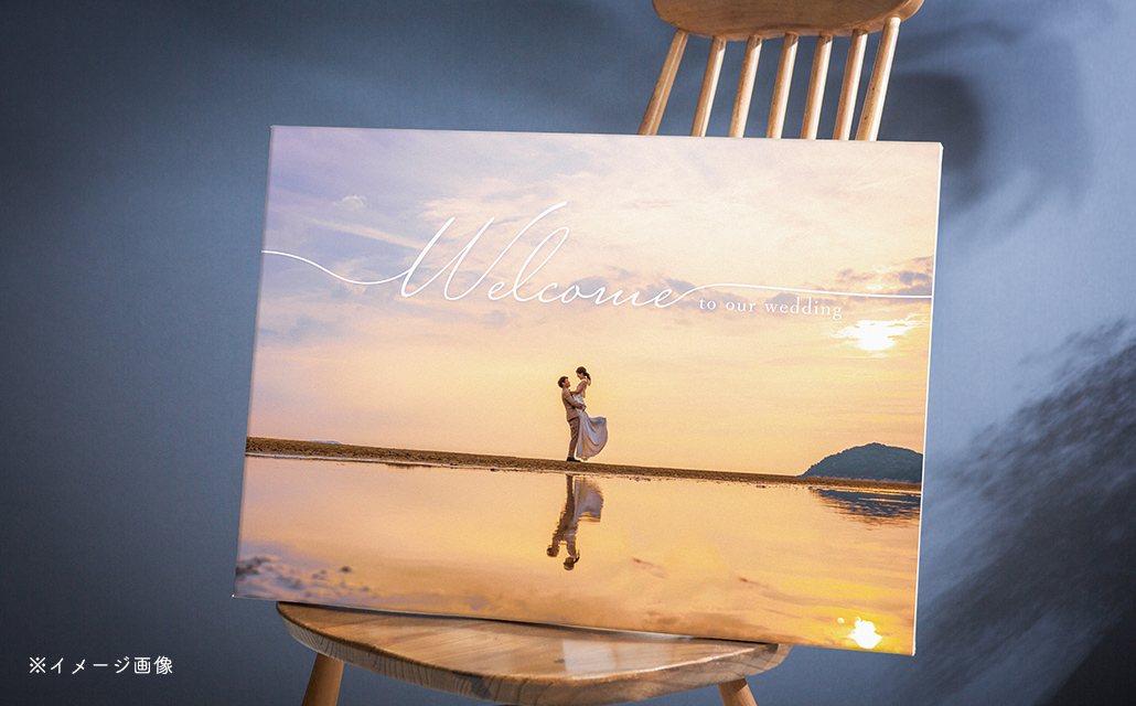 結婚式当日、ゲストをお迎えするウェルカムスペースに、前撮り写真を使ったウェルカムボードを飾るのはいかがでしょうか?